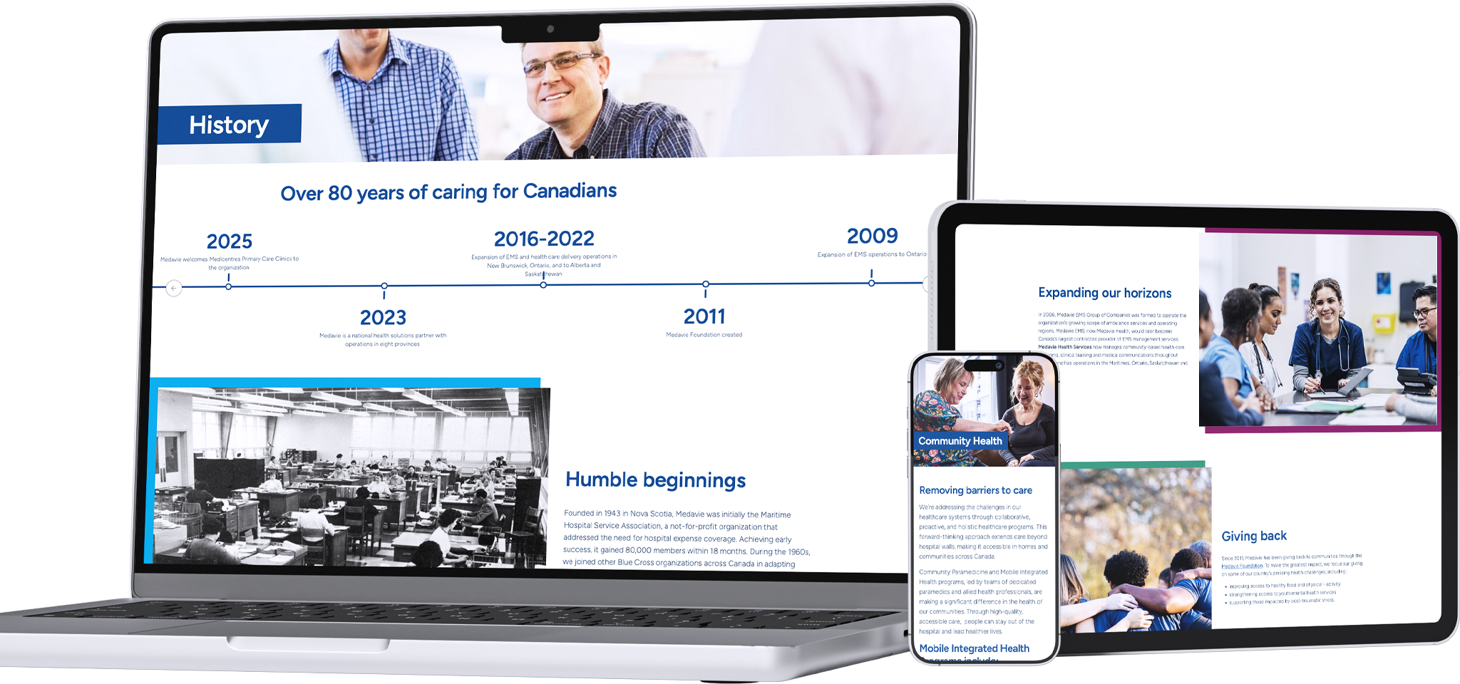 Medavie, Canada's leading group health insurer, required a comprehensive digital transformation to better serve their enterprise and individual clients. Working in partnership with NATIONAL Public Relations, Rollin developed a complete Craft CMS 5 solution that enhanced bilingual user experiences and enabled autonomous content management.