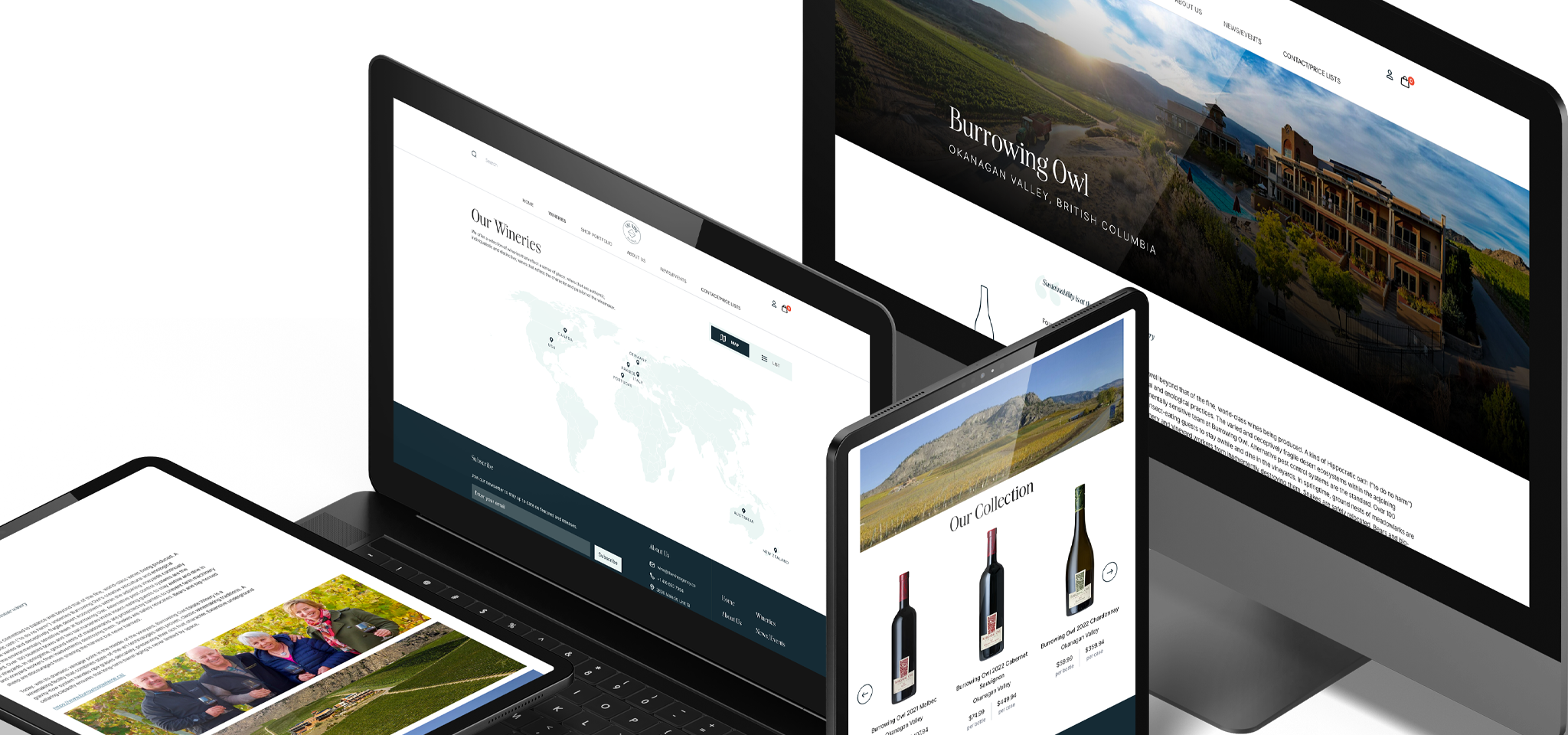 As Canada's largest fine-wine importer, The Vine Agency needed to modernize its digital presence and launch online sales. The company sought a complete website redesign with integrated e-commerce functionality, allowing direct sales to consumers and licensees while maintaining real-time inventory synchronization across physical retail locations nationwide.